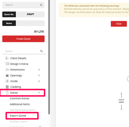 If 'Export Quote' is greyed and you cannot select it, first calculate the design then try again.