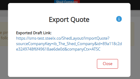 2. SMS will present the Export Quote screen. Select Export And Display Link