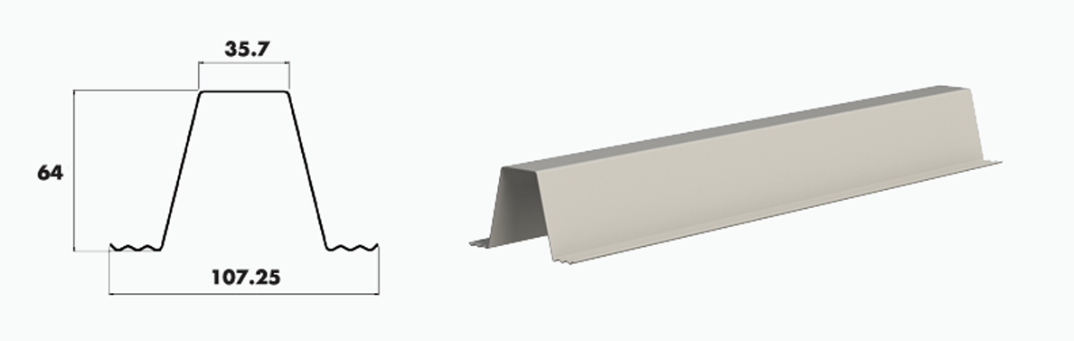 Typically uses TH64, meaning the purlin is 64 mm deep.