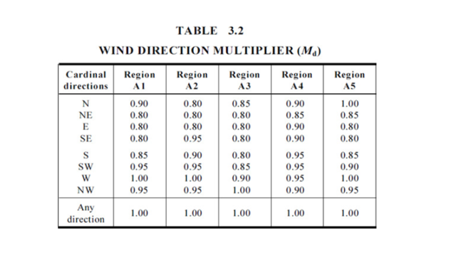 The simplified explanation is that a design wind event will be the result of thunderstorms, and the areas nominated as “1” represent the direction of the most severe thunderstorms. This multiplier allows for a reduction in other directions based on the relative severity of storms from those directions.